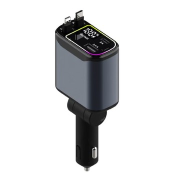 Cargador de coche con pantalla Digital LED Cable elástico antigolpes Nuevo cargador de teléfono móvil estable multirápido USB QC3.0 Tipo-C